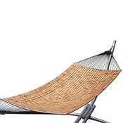 The is the product to enjoy for years as an incredible addition of relaxation to any backyard or around pool deck. The hammock bed is constructed of a greatly comfortable, relaxed by wood cubes massage your back, while the spreader bar is made out of polish steel. If you're looking for comfort, luxury and an incredible addition to your backyard, this is the hammock bed to choose! Made of High Density Eucalyptus it is the premium grade of solid â??Eucalyptus Gradisâ? hardwood, grown in 100 % well managed forests in Brazil, certified by the Forest Stewardship Council. Itâ??s renowned for its excellent resistance to every day wear and tear. It is extremely durable and tightly grained to produce a desirable density. It remains unaffected by all variations in weather, especially its resistance to damp conditions makes itself extremely competent at combating insect attacks and decay. Features: Mold, mildew, fungi, termites, rot and decay resistant Eucalyptus is environmentally friendly and harvested from protected forests A carry-on bag is included