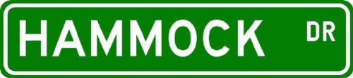 HAMMOCK Street Name Sign, A BRAND NEW SIGN!! Made of aluminum and high quality vinyl lettering and graphics this sign is 4 x 18 inches. Made to last for years outdoors the sign is nice enough to display indoors. Comes with two holes pre-punched for easy installation, corners are rounded.