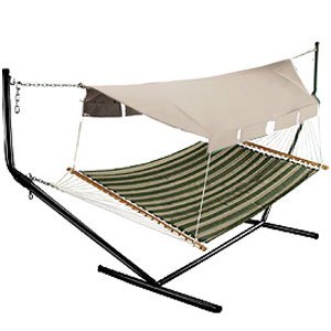Hatteras Outdoors Black Green Hammock Canopy is a stylish accessory offers sun protection throughout the day.