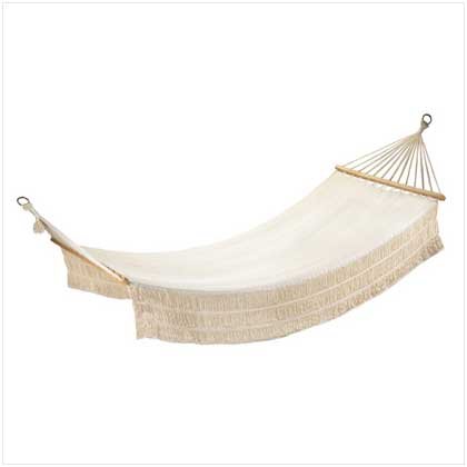 Rock away the cares of the day in this cushy one-person hammock. Cotton. Max Wt.: 264 lbs. 34 1/4" x 110" long.