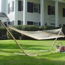 Featuring a much better paint than other 450 lbs weight capacity hammock stands, this 15 ft long stand features a durable powder coated finish that is scratch and rust resistant. Spring pin construction reinforces stability of interlocking poles and provides for easy set up or storage in minutes with no tools. This stand has a generous weight capacity of 450 pounds. The paint is electro-statically applied in a controlled environment and then cured at a high temperature for premium adhesion to the metal surface for years of trouble free service. This stand is constructed of heavy steel tubing for stability and security. The stand comes with durable caps that protect the ends of the poles and zinc plated hammock hooks so that you can rest confidently and let your worries drift away. Hammock, pillow and wheel kit sold separately unless otherwise stated.