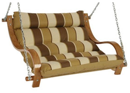 Settle into a lush Cushioned Double Swing for some rest and relaxation. Made to accommodate two people, the swing measures 48 inch wide and 42 inch deep. Constructed from DuraCord fabric, it is designed to resist mold and mildew. The solid oak arm and base supports are dipped in marine spar varnish to ensure a long life of service. The zinc-plated chromate hardware is designed to resist breakdown from harsh elements and ensures its strength and safety.