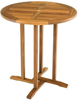 This exquisite piece of furniture features one of the prettiest wood you can find. Cumaru is a non-porous wood from Brazil. It is extra soft to the touch and showcases deep and complexe tones of fiery gold and brown. Measuring 40 inches high, it accomodates most barstools. 37 inches in diameter also create a large surface ideal for breakfast or outdoor candle light dinners. Easy no screw assembly. This table and two barstools require an area of 4 ft by 8ft. Middle hole for umbrella pole with cap when not in use.