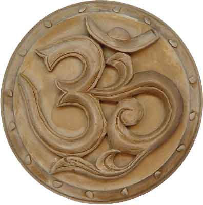 Wall plaque - om gypsum cement. Om. OM means oneness with the Supreme, the merging of the physical and the spiritual body, it is the symbol of Hindouism. Considered as the most powerful mantra it transcends time.