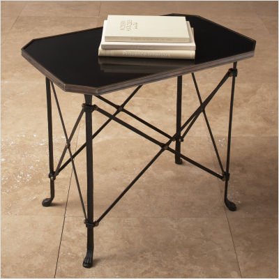 Rectangular Directoire Table in Nickel with Mirror, Brass with Black Granite or Brass with White Marble 30.25"L x 19.25"W x 26.5"H