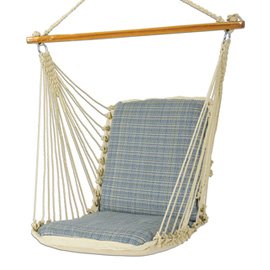 Made for a solitary retreat, the Single Cushioned Swing creates an heavenly rest for your body and soul. Made to hold up to 350 lbs, it can be hung on porches, balcony, and even inside your home. The solid wood spreader bar keeps the shape of the swing open to provide a constant invitation to relax. The fabric is filled with a special quick drying foam that dries quickly and retain its shape. The brass grommets provides luxury and an added look. This swing has the advantage of fitting in many areas and of creating a colorful addtion to any outdoor setting. The ceiling must be minimum 6.5 ft high and maximum 7.5 feet high or you will need a hanging kit or tree straps. Simply comfortable, this is a useful, effective and easy upgrade for your house. This item is made with the revolutionary DuraCord fabric. It features the softness of cotton and the outdoor durability of acrylic. DuraCord is a major advancement in the outdoor textile industry as this fabric features colorfastness, softness and mildew resistance. The colors are bright and will keep their stunning feature. DuraCord does not absord water so it dries very quickly. You can click here to learn more about DuraCord.