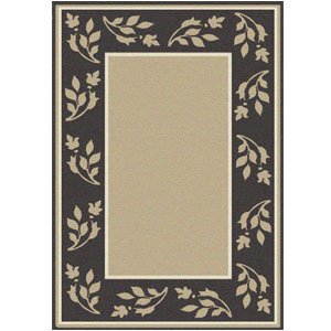 Floating buds and leaves frame this Southport Outdoor Rug Traditional in a quiet design illuminated against a solid black border.