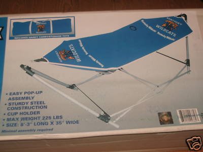 UNIVERSITY OF KENTUCKY OFFICIALLY LICENSED PORTABLE HAMMOCK W/ CARRY TOTEPERFECT FOR TAILGATING, PARTIES, PICNICS, ANYWHERESHOW YOUR TEAM SPIRIT INCLUDES:COLOR IS BLUE WITH THE UK LOGO; CUPHOLDER; STURDY STEEL CONTRUCTION; EZ POP UP ASSEMBLYDIMENSIONS: 8 FOOT 3" LONG; 35 " WIDE; MAX WEIGHT 225 LBS;