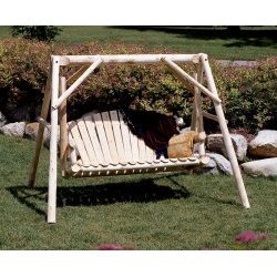 Escape the day's stress with this rustic - looking 3 - person Lakeland Mills Cedar Glider! At home or at the cabin, when it's time to take time out, do it right! Lakeland Mills Cedar Furniture is not only beautiful, but its contoured design makes for a comfortable, supportive seat. Whether you're spending some time with that special someone or just enjoying some "me" time, you'll appreciate every stress-reducing moment you spend on this rustic white cedar Glider. More: Cedar is naturally rot and insect resistant; Comes partially assembled, and is easy to finish with common tools; Made in the USA.; Assembled measurements: 6' d. x 5 1/2' h. x 7' w.; Weighs 160 lbs. Order Today! Lakeland Mills 5' A-Frame Yard Swing