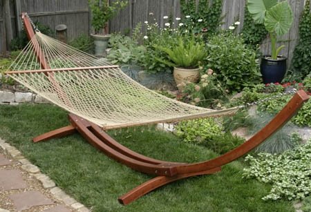 Relax! Our new soft-spun poly rope hammock offers you an inexpensive break from it all. Cradle your body with the perfect amount of support and comfort. With natural color rope and wood, our hammock coordinates with any decor and can be hung from standard hammock stand, trees, decks and more. * STAND SOLD SEPARATELY***Approximately 59" Wide at Hardwood SpreadersApproximately 80" Bed LengthApproximately 128" Overall Length (ring to ring)